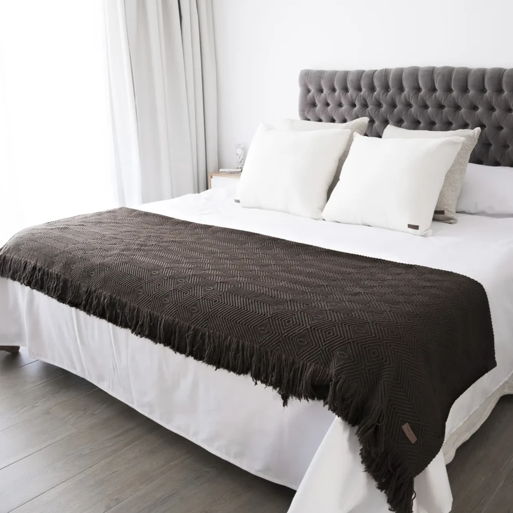 Mantas y pie de cama tejidos con hilados de 100 % algodón.