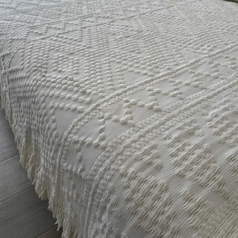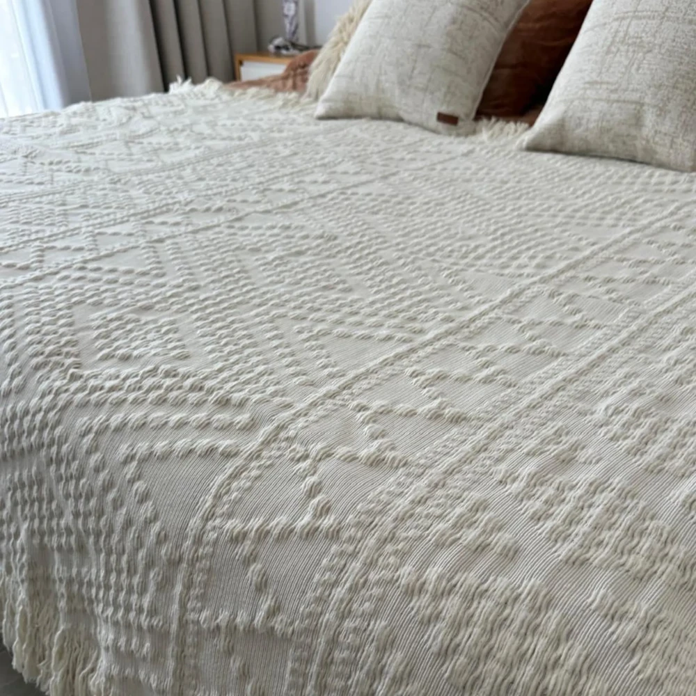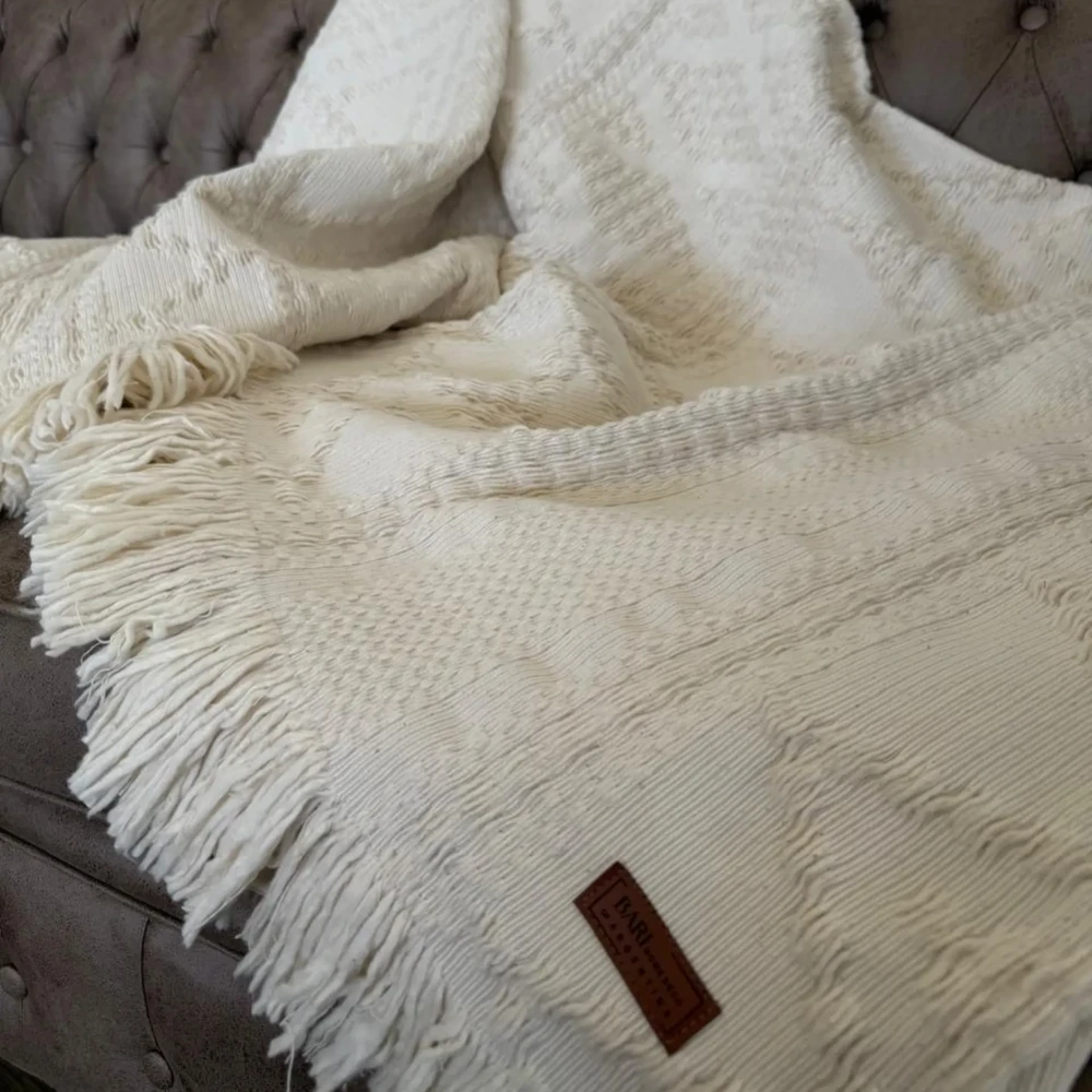 Mantas y pie de cama tejidos con hilados de 100 % algodón.