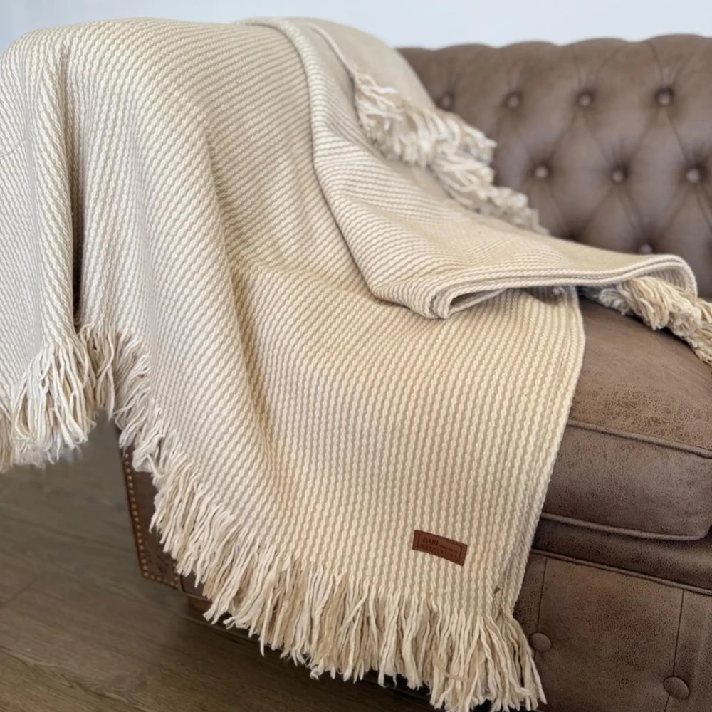 Mantas y pie de cama tejidos con hilados de 100 % algodón.