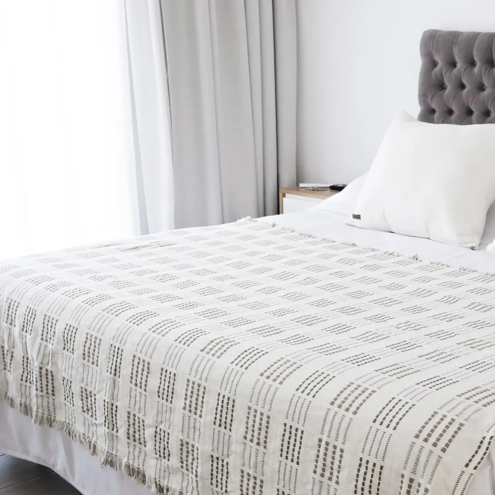Mantas y pie de cama tejidos con hilados de 100 % algodón.