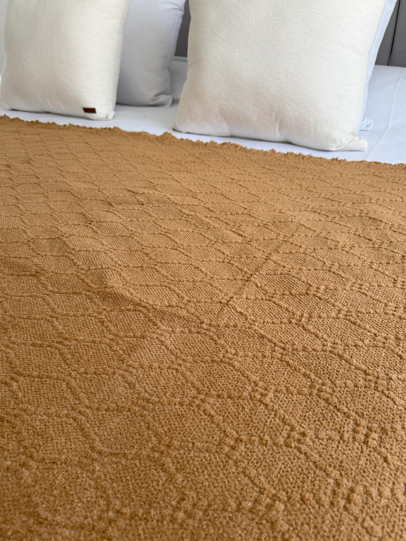 Mantas y pie de cama tejidos con hilados de 100 % algodón.